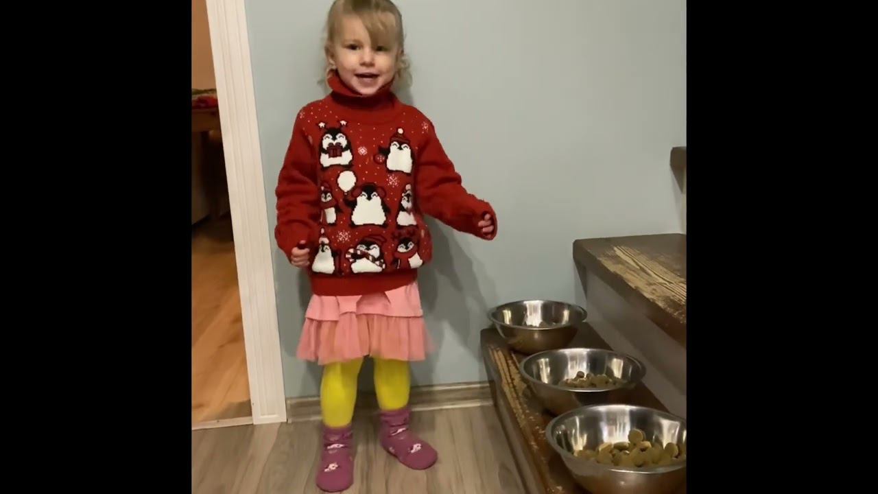 Яна рассказывает и показывает как кормит собак