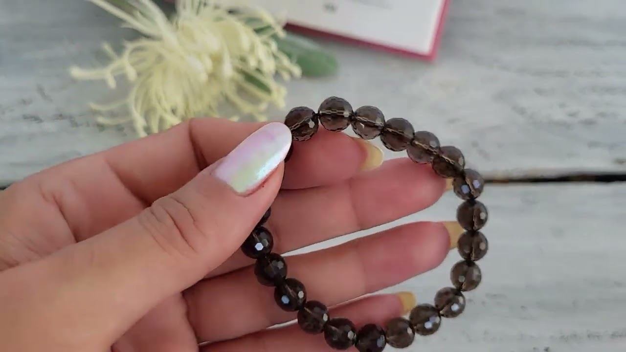 Браслет украшения из натуральных камне. Браслет из раухтопаза (дымчатого кварца): раухтопаз (дымчатый кварц) шарик 8 мм. ювелирная огранка, длина 18 см. на резинке (на запястье 15-17 см.)