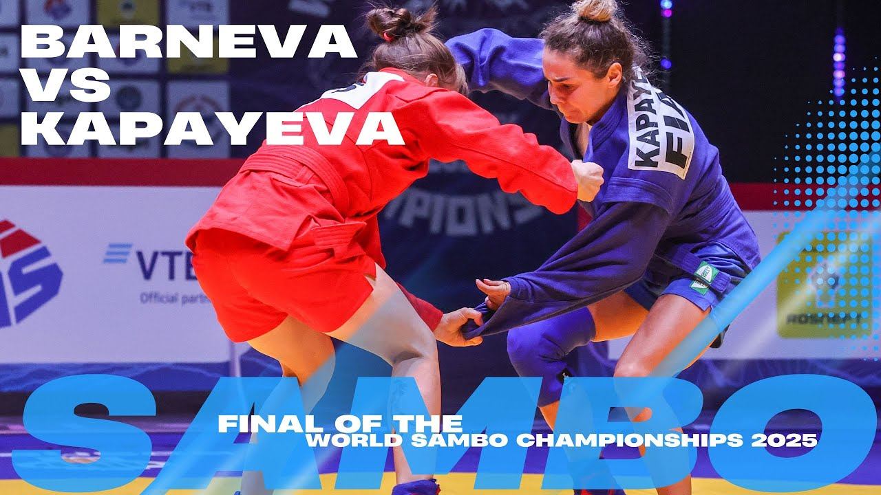 FINAL MATCH Final bout between Margarita BARNEVA (FIAS1) and Anfisa KAPAYEVA (FIAS2) at the World SAMBO Championships 2025 in Bishkek, Kyrgyzstan. Watch the full match here: www.sambo.live #SAMBO #WorldChampionships2025 #Bishkek2025 #Finals ___________ http://www.sambo.sport/ - FIAS official web-site / официальный сайт ФИАС https://www.facebook.com/SamboInternationalFederation/ - official FIAS page on Facebook / официальная страница ФИАС в Фейсбук https://twitter.com/SAMBOFIAS - official FIAS page on Twitter / официальная страница ФИАС в Twitter https://vk.com/fias_official - официальная страница ФИАС ВКонтакте http://www.youtube.com/user/SAMBOFIAS - official FIAS YouTube Chanel / официальный канал ФИАС на YouTube
