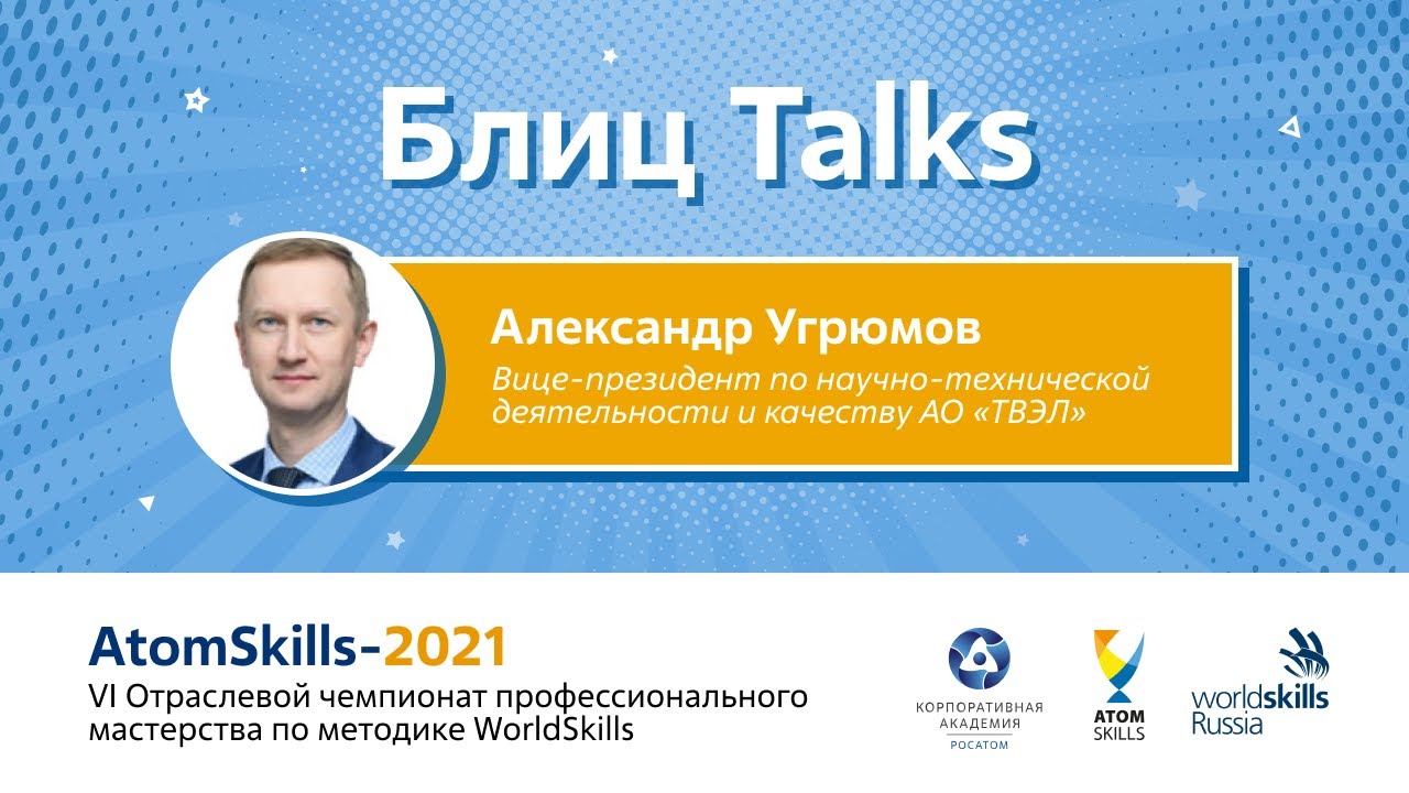 #БлицTalks AtomSkills-2021 Александр Угрюмов, Вице-президент по научно-технической деятельности и качеству АО «ТВЭЛ» #АкадемияРосатома #БесконечноеРазвитие #БлицTalks #AtomSkills