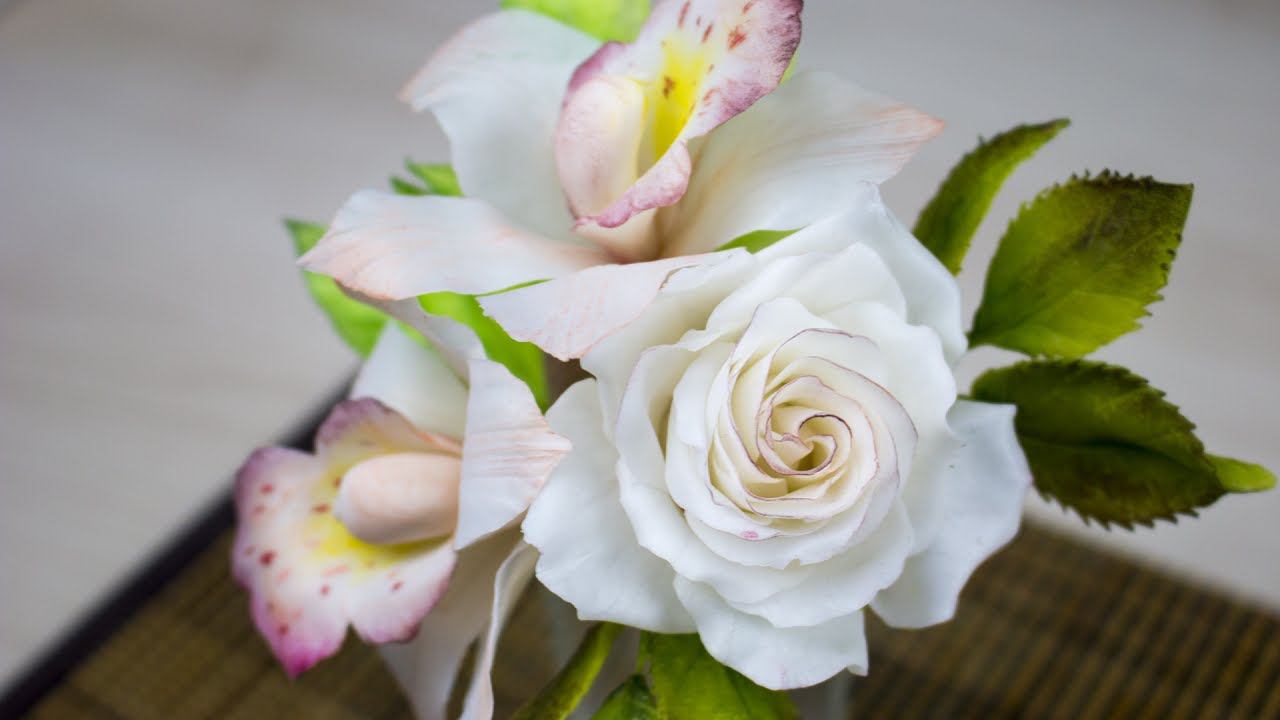 Цветы из Сахарной пасты( Принцесса). Орхидея и Роза в цветочной композиции - Я - ТОРТодел!