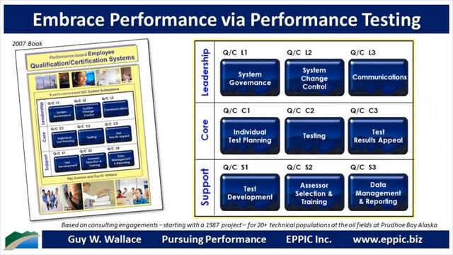 Performance Testing - Go For Performance – 2020 Series 10-04 Leadership Subsystem 2: System Change Control results in having a battery of qualification tests, that is current with the tasks actually required in the workplace, and having enough workers qualified for new tasks, and re-qualified for changed tasks. The Performance Competency Councils review change requests coming from anywhere in the system, and rule on the need to make changes, and then plan for new or updated tests to be developed. The Performance Competency Councils also determine if there is a requirement for people to retest when a test has been changed for any reason. Performance Testing - It’s ALL - about Performance. And demonstrated competence. www.eppic.biz