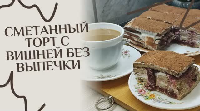 Сметанный торт с вишней без выпечки