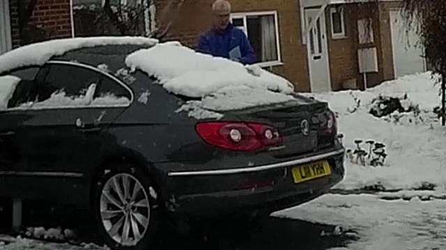 Мужик не почистил машину от снега и во время открытия багажника, весь снег скатился туда. #прикол #фейл #зима #неудача