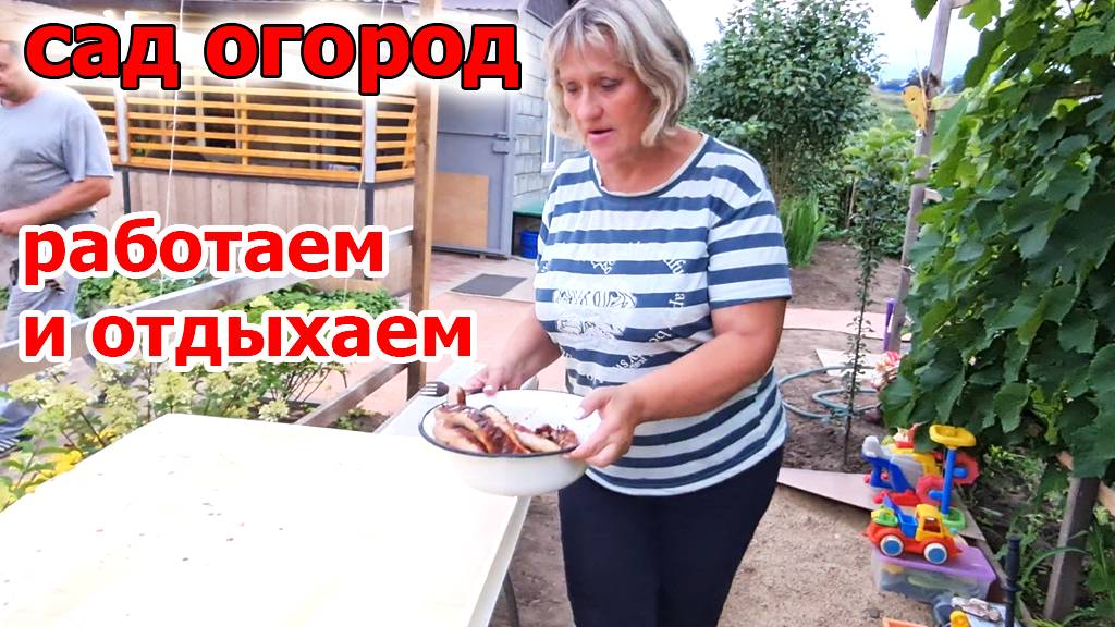Сад огород.Купили телевизор.Очистил огород от Травы после Дождей.Готовим Шашлык и Купаты с соседями