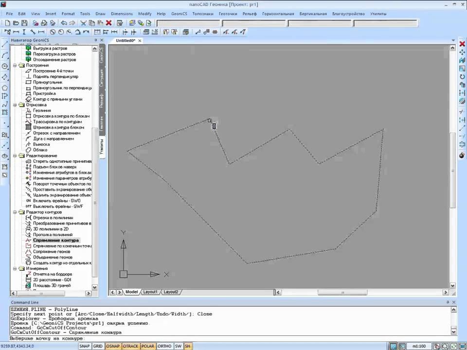 Утилиты nanoCAD Геоника - Спрямление контуров