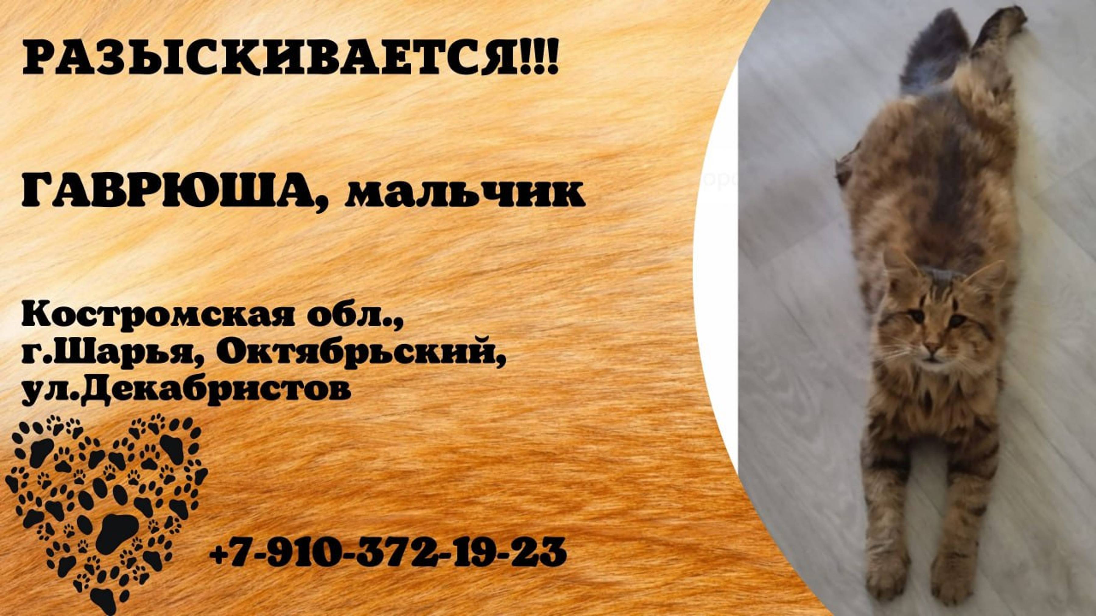 Пропал кот! ГАВРЮША. Костромская обл, г. Шарья