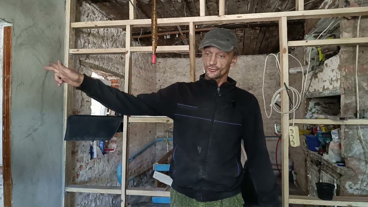 Залили бетонные полы. Делаем перегородки, установили дверь в санузел.Сделали разметку под теплицу