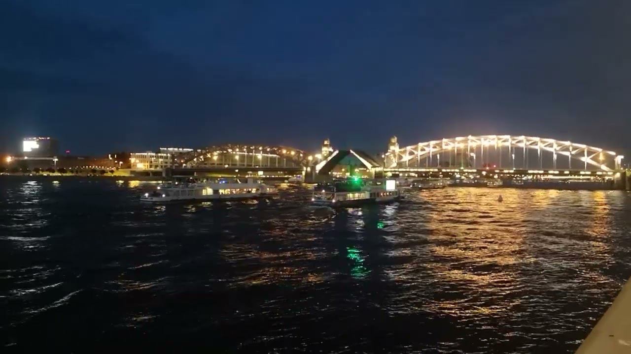 Разводка Большеохтинского моста Петра Великого, Санкт-Петербург, Россия