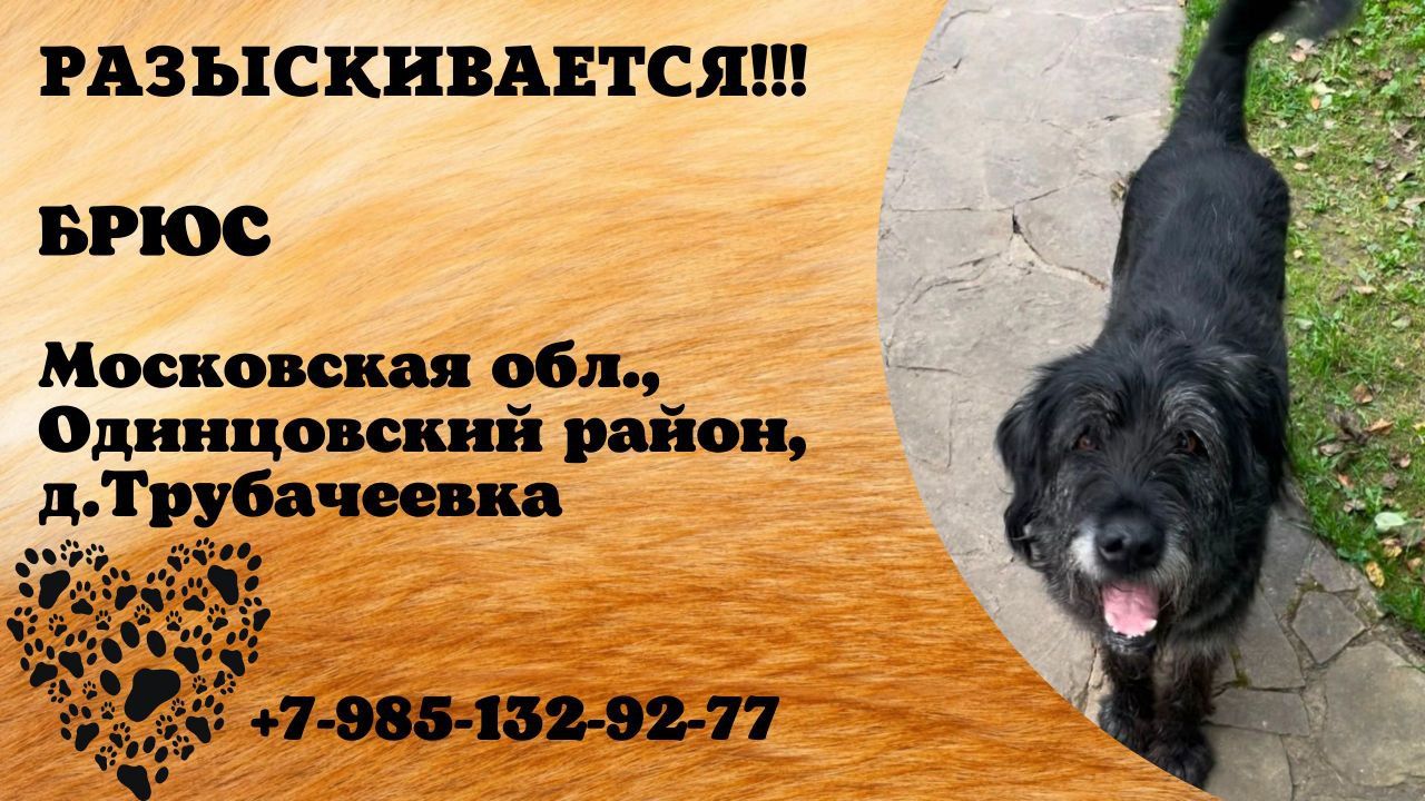 Московская Одинцовский Пропала собака Пропал наш любимый пёс Брюс. Он убежал от бабушки около месяца назад в районе деревни Трубачеевка. Предположительно мог уйти в сторону Крюково. Описание: · Крупный, беспородный пёс. · Шерсть полностью чёрная. · Примерно 10 лет. · Отличительная особенность: седая мордочка. ОЧЕНЬ ВАЖНО: Собака не контактная, пугливая. Не пытайтесь её ловить или гнать! Она может убежать ещё дальше или проявить агрессию от страха. Если вы увидели Брюса или похожую собаку, пожалуйста, СРАЗУ позвоните: 📞 8-985-132-92-77 (Арина) Любая информация очень важна! Пожалуйста, откликнитесь и сделайте репост. Он очень нужен и любим! Инфо: https://vk.ru/wall-198815410_215388 #пропала_собака #московская #одинцовский