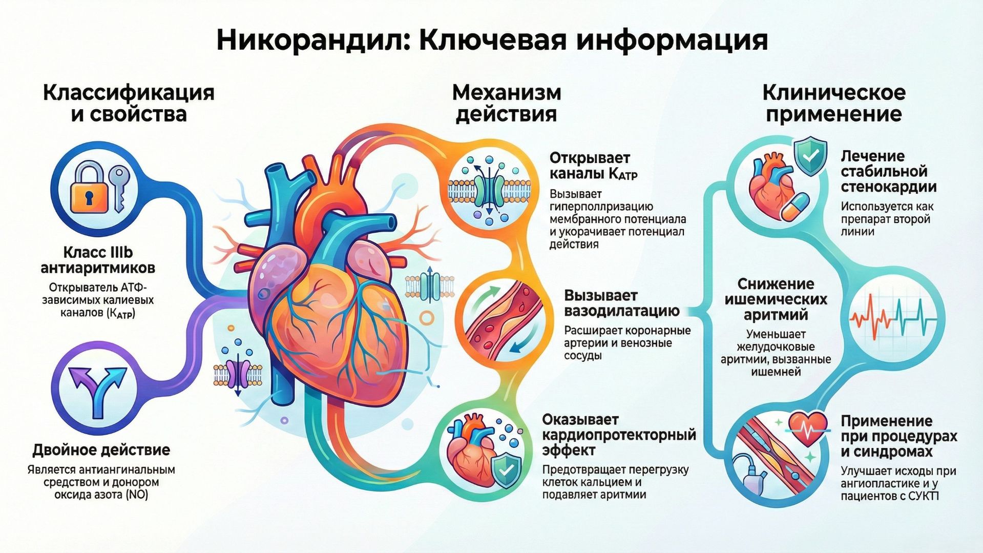 Практический справочник EHRA по антиаритмическим препаратам: 10 ключевых положений о современном применении European Heart Journal, Volume 47, Issue 3, 14 January 2026, Pages 286–289, https://doi.org/10.1093/eurheartj/ehaf805 Стратегическая роль Никорандила в современной системе антиаритмической терапии и экстренной кардиоверсии https://dzen.ru/a/aXOgTPbcN1aEjAdw