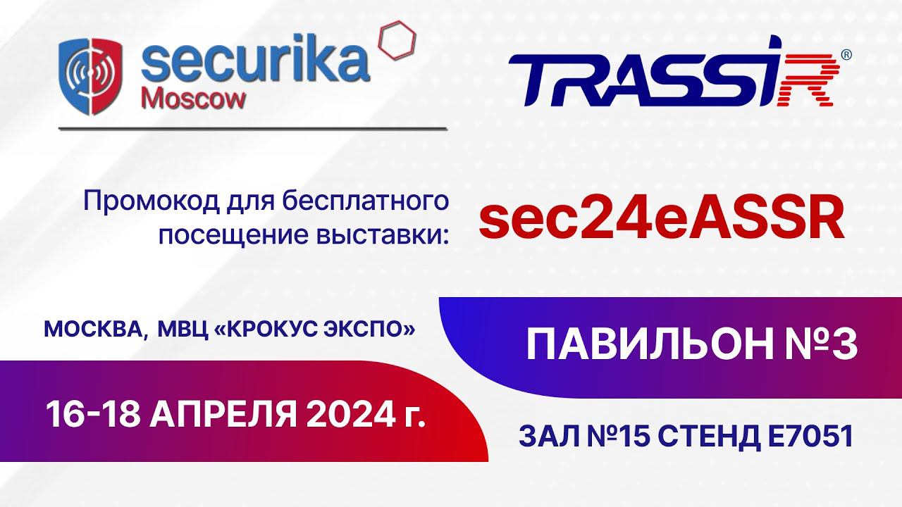 Промокод на бесплатное посещение: sec24eASSR Место проведения: г. Москва, МВЦ «Крокус Экспо», павильон №3 Зал №15 стенд E7051 Дата: 16-18 апреля 2024 С 16 по 18 апреля пройдет международная выставка Securika Moscow 2024. Мы примем в ней участие и представим улучшенные технологии видеоаналитики, новинки оборудования этого года, а также передовые видеорегистраторы, получившие сертификат Минпромторга России! Познакомьтесь с передовыми технологиями видеонаблюдения и проведите время с пользой на нашем стенде. А еще мы приготовили для вас множество интересных интерактивов, которые помогут узнать больше о продукции TRASSIR! Подписывайтесь на канал, ставьте LIke, делитесь видео: http://www.youtube.com/user/dsslvideo... - DSSLNews - профессиональный канал о безопасности! http://www.dssl.ru Не забудьте поставить Like видео и поделиться им с коллегами. Добавляйтесь в соцсетях: ВКонтакте http://vk.com/trassir Фейсбук https://www.facebook.com/TRASSIR Instagram https://www.instagram.com/dssl_cctv/
