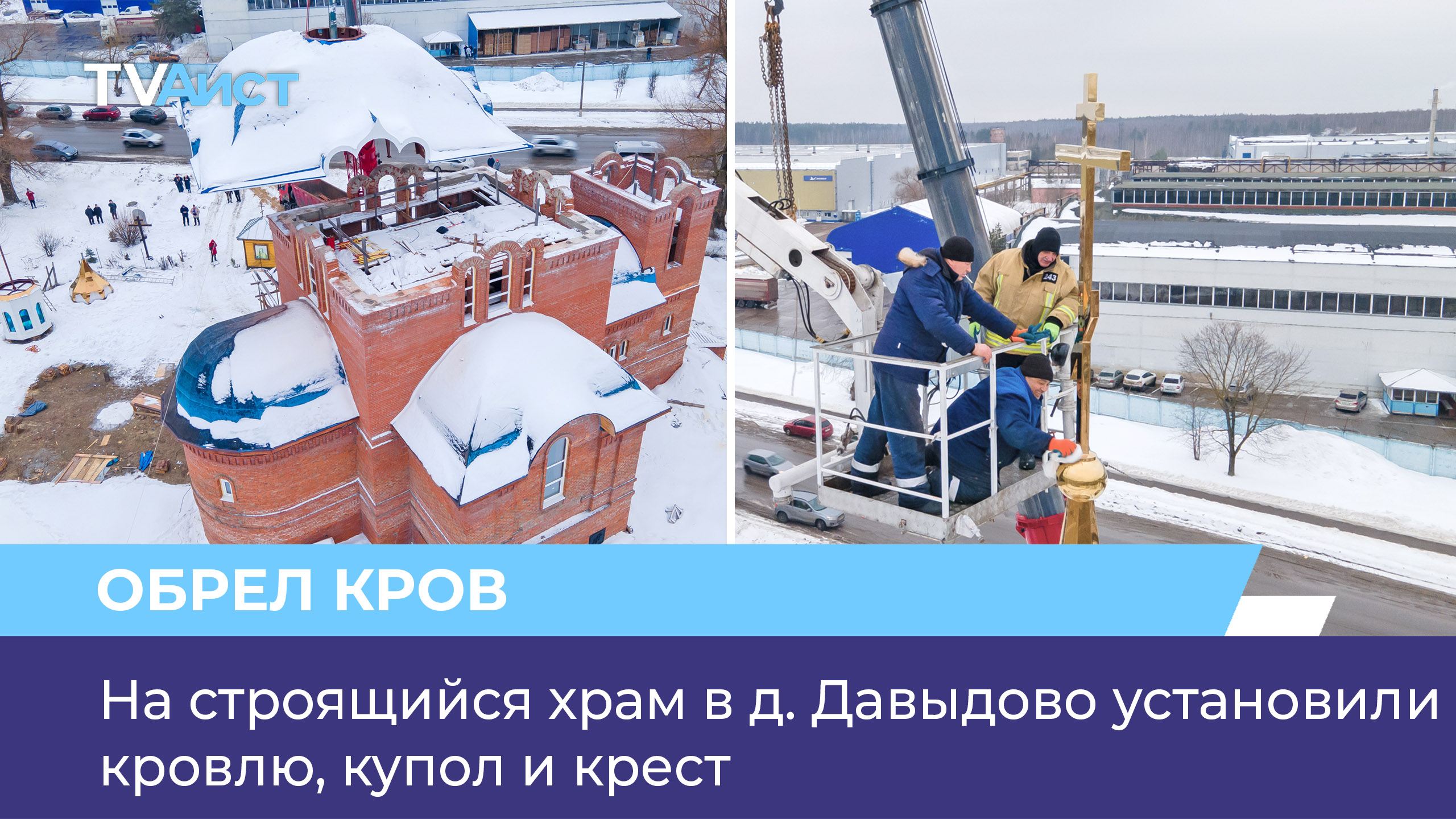 Долгожданное событие для православных верующих деревни Давыдово. На храм, строящийся в честь архангела Михаила, установили кровлю, купол и крест. За работой мастеров наблюдала наша съемочная группа.