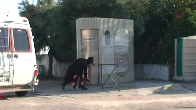 Розыгрыш с общественным туалетом и человеком - пауком
