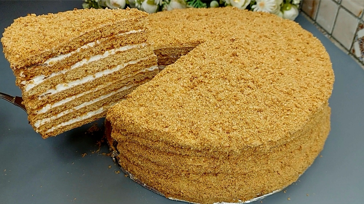 Медовый Торт🍯Самый Быстрый и Вкусный Новогодний Торт Тающий во рту!Простой рецепт домашнего торта!