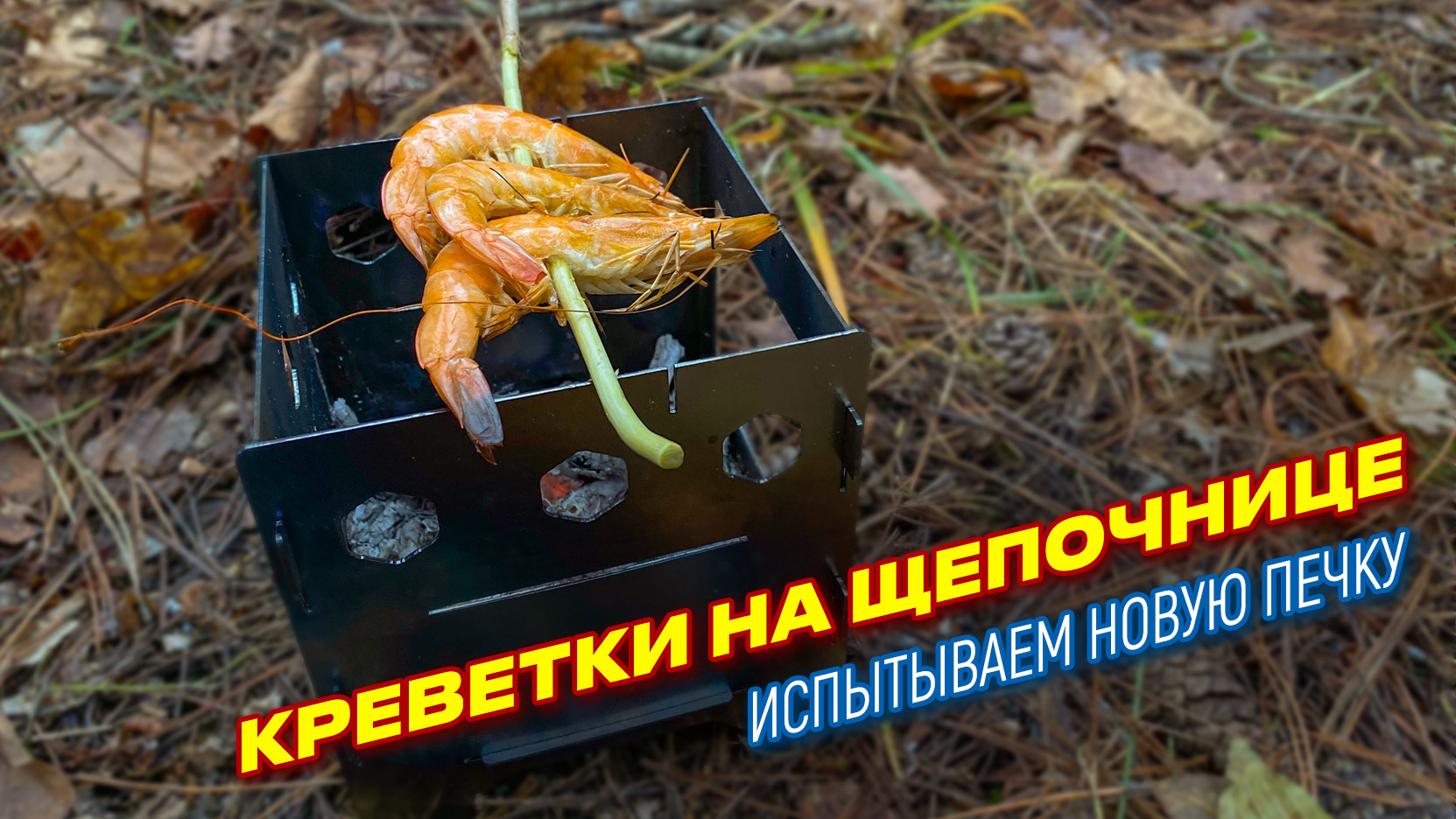 Креветка на щепочнице в лесу. Испытываем новую печку.
