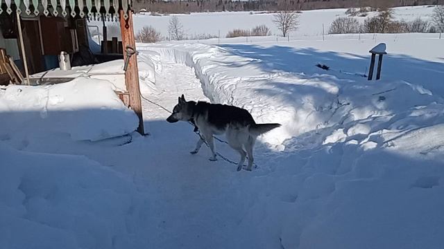 25 февраля 2026 года. Среда. Дом у озера. Султан. Вот такой новый жилец у нас появился - немецкая овчарка Султан. Молодой, необученный, но очень жизнерадостный и дружелюбный. 🐕🦺 Впрочем, незнакомых людей возле дома он не любит, так что, незванным гостям не стоит к нам заходить.