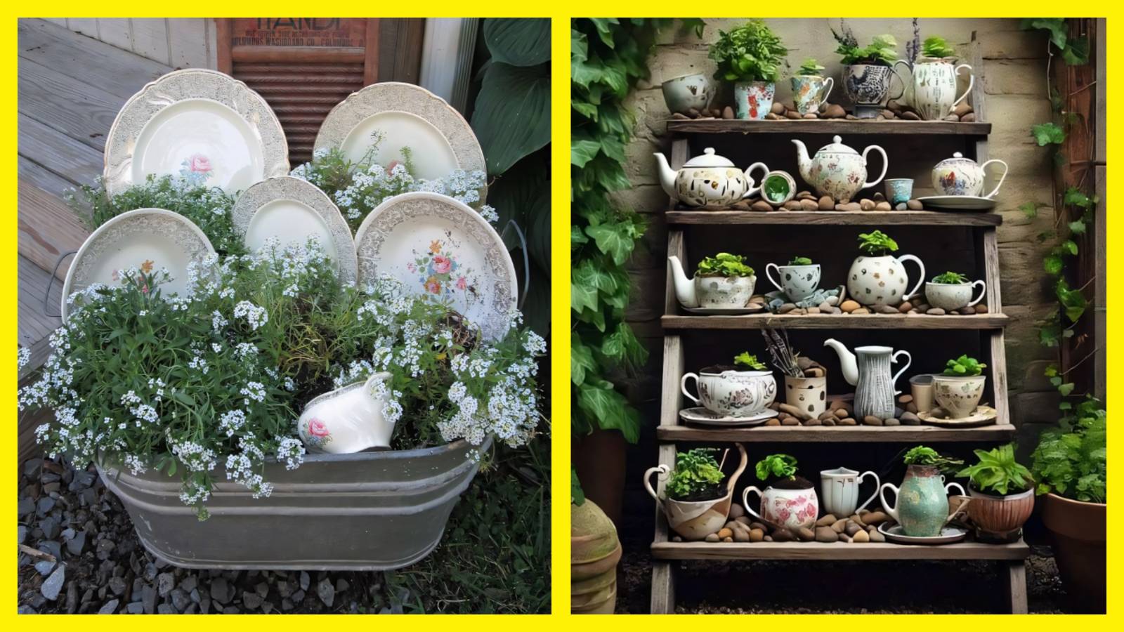 Идеи декора для сада из старой посуды 🏞️