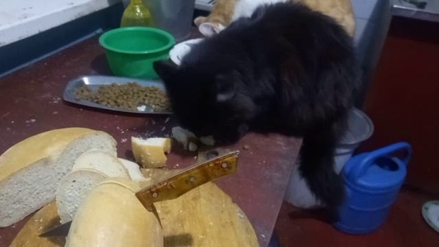Котик Айфон решил попробовать хлебушек