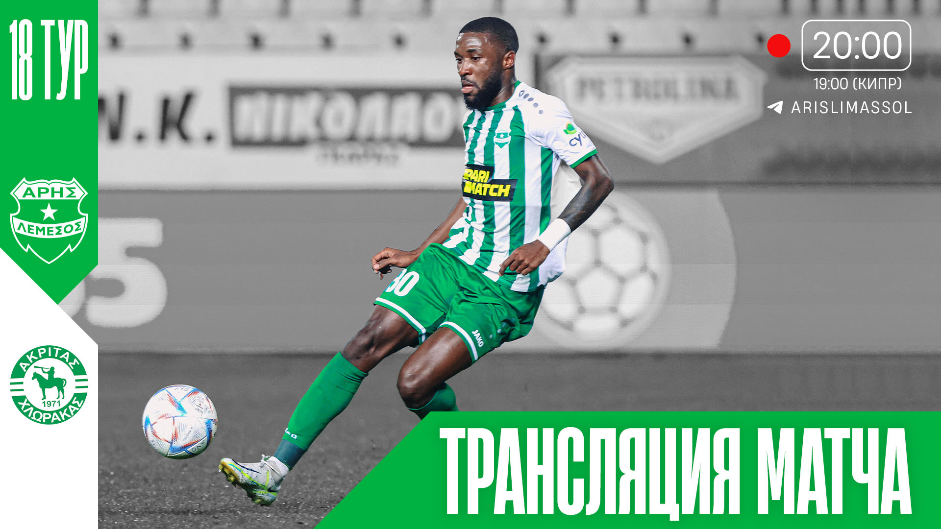 Матч 18-го тура Чемпионата Кипра по футболу. «Арис» из Лимасола играет дома против «Акритаса». Поддержим «Арис»! Подписывайтесь на официальный телеграм-канал нашей команды — t.me/arislimassol