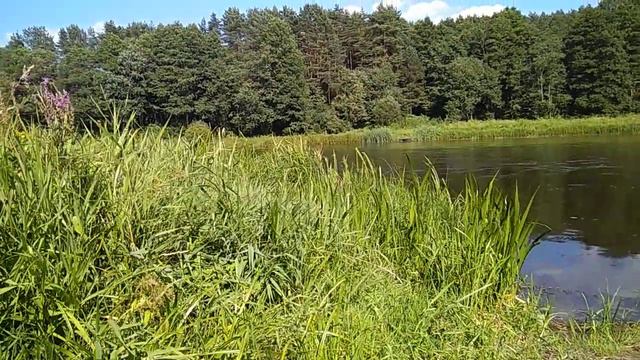 Все зелёное, свежее, рядом река и лес.