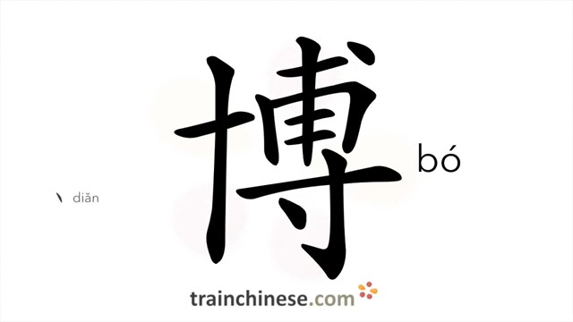 博 (bó) rich, plentiful; ample, extensive; to know widely; get, aim, obtain