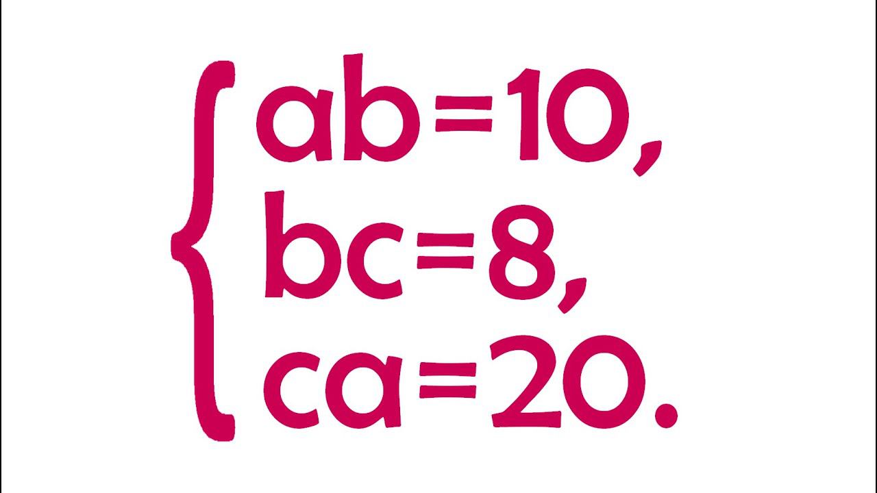 Решите систему ➜ ab=10, bc=8, ca=20 ➜ Быстрый способ