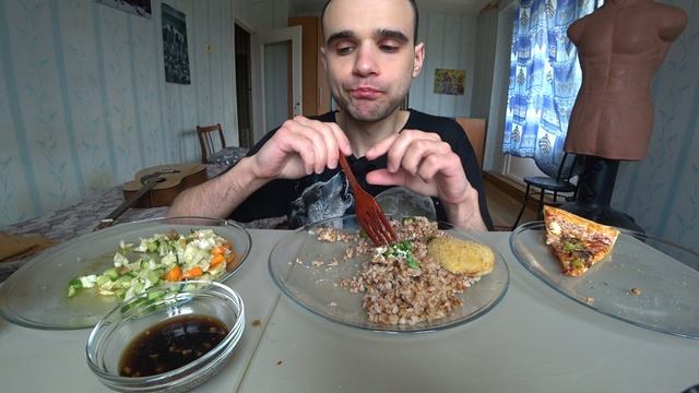 МУКБАНГ / ГРЕЧКА С БИТОЧКАМИ ИЗ ТРЕСКИ / ПИЦЦА ДОДО/ САЛАТ ОВОЩНОЙ/ EATING Mukbang ASMR/ АСМР #865