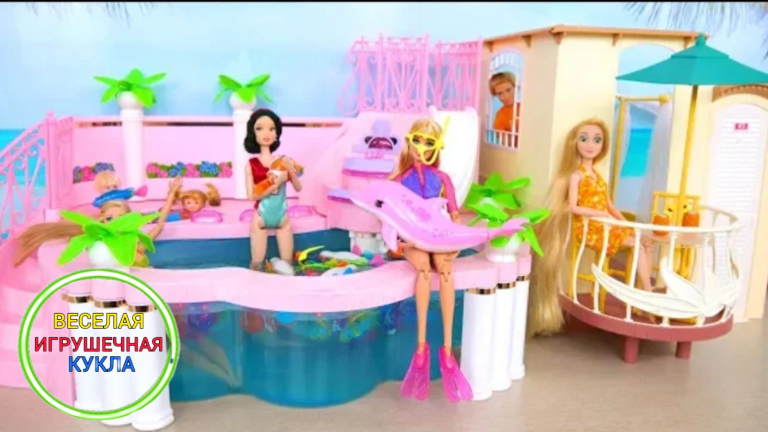 Тропический отель с басейным, полным рыбой для кукол Барби