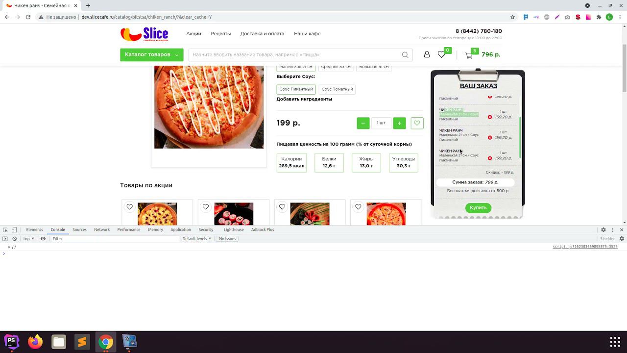 slicecafe Изменение показа товара в корзине Баг Товар в корзине