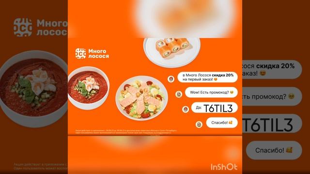 T6TIL3 — получи скидку 20% на первый заказ 9QZBGS — Ролл Темпура с лососем в подарок от 1 800 рублей Акция доступна новым клиентам в Москве и Санкт-Петербурге ?НА БЛАГО ВСЕМ ?