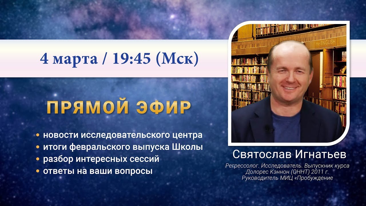 Понравилось видео? Будем признательны, за поддержку и перечисление любой суммы на ваше усмотрение. https://yoomoney.ru/to/4100117656831078 4 марта в прямом эфире мы поговорили о регрессионном поиске, и новостях исследовательского центра. Подвели итоги февральской Школы регрессологов. А ещё рассмотрели интересные моменты из сеансов регресса, и ответили на ваши вопросы в прямом эфире. Провели несколько прямых включений. Так же, представили вашему вниманию новую рубрику. На ваши вопросы в прямом эфире отвечал ведущий регрессолог Святослав Игнатьев, провела эфир, журналист и регрессолог Татьяна Бирковская. Мы в социальных сетях ВКонтакте https://vk.com/center.probujdenie Telegram-канал https://t.me/centr_probujdenie Яндекс.Дзен https://zen.yandex.ru/id/609465e239041043eca318fd Одноклассники https://ok.ru/group/61082272465037 RuTube https://rutube.ru/channel/23553939/ YouTube https://www.youtube.com/c/ТВПробуждение #Пробуждение #Регрессия #Сеансрегрессии #ВысшееЯ #Школарегрессологов