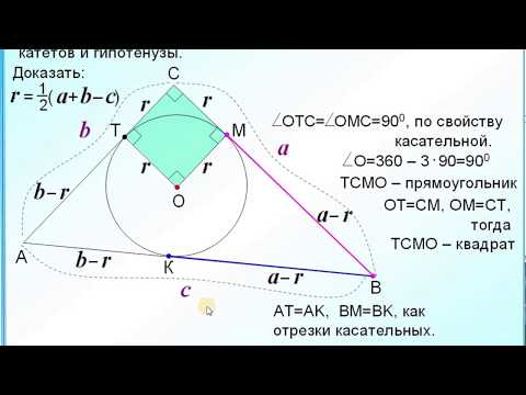 Докажите, что радиус окружности, вписанной в прямоугольный треугольник, равен половине разности суммы катетов и гипотенузы.
