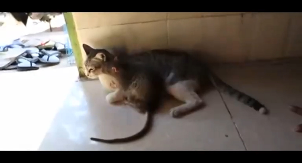 Кот не обращает внимания на огромную крысу, которая бегает по его лицу. #прикол #кот #животное #крыса