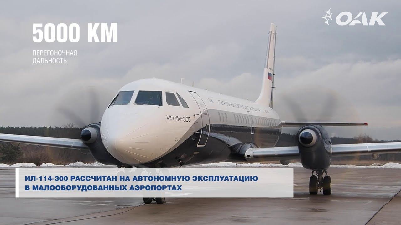 16 декабря 2020 года на аэродроме в Жуковском совершил первый полет новый пассажирский региональный турбовинтовой самолет Ил-114-300. − О том как первый опытный модернизированный Ил-114-300 готовился к первому полету; − Кадры производства Ил-114-300 по серийным технологиям на предприятиях ОАК и производства двигателя на «ОДК-Климов»