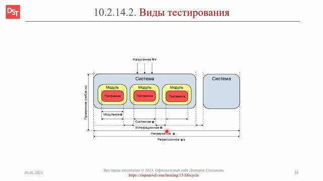 Словарь «Термины и определения корпоративных информационных систем и ERP-систем». Ключевые слова: функциональное тестирование, модульное тестирование, интеграционное тестирование, системно тестирование, непрерывное тестирование, приемочное тестирование, UAT, user acceptance test, нагрузочное тестирование, регрессионное тестирование. Ссылка: https://stepanovd.com/training/15-lifecycle