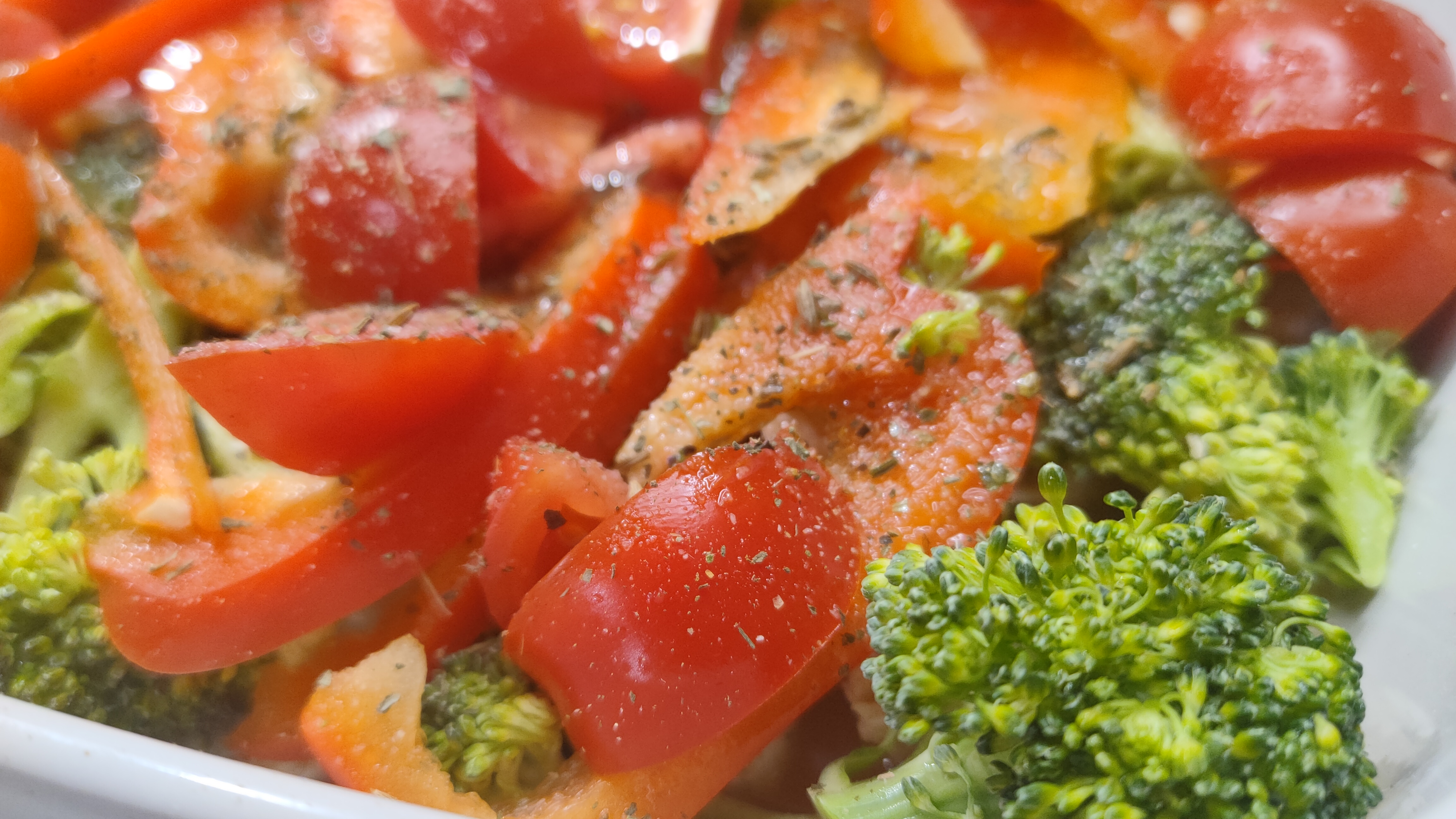 Брокколи с овощами, курицей и яйцом.