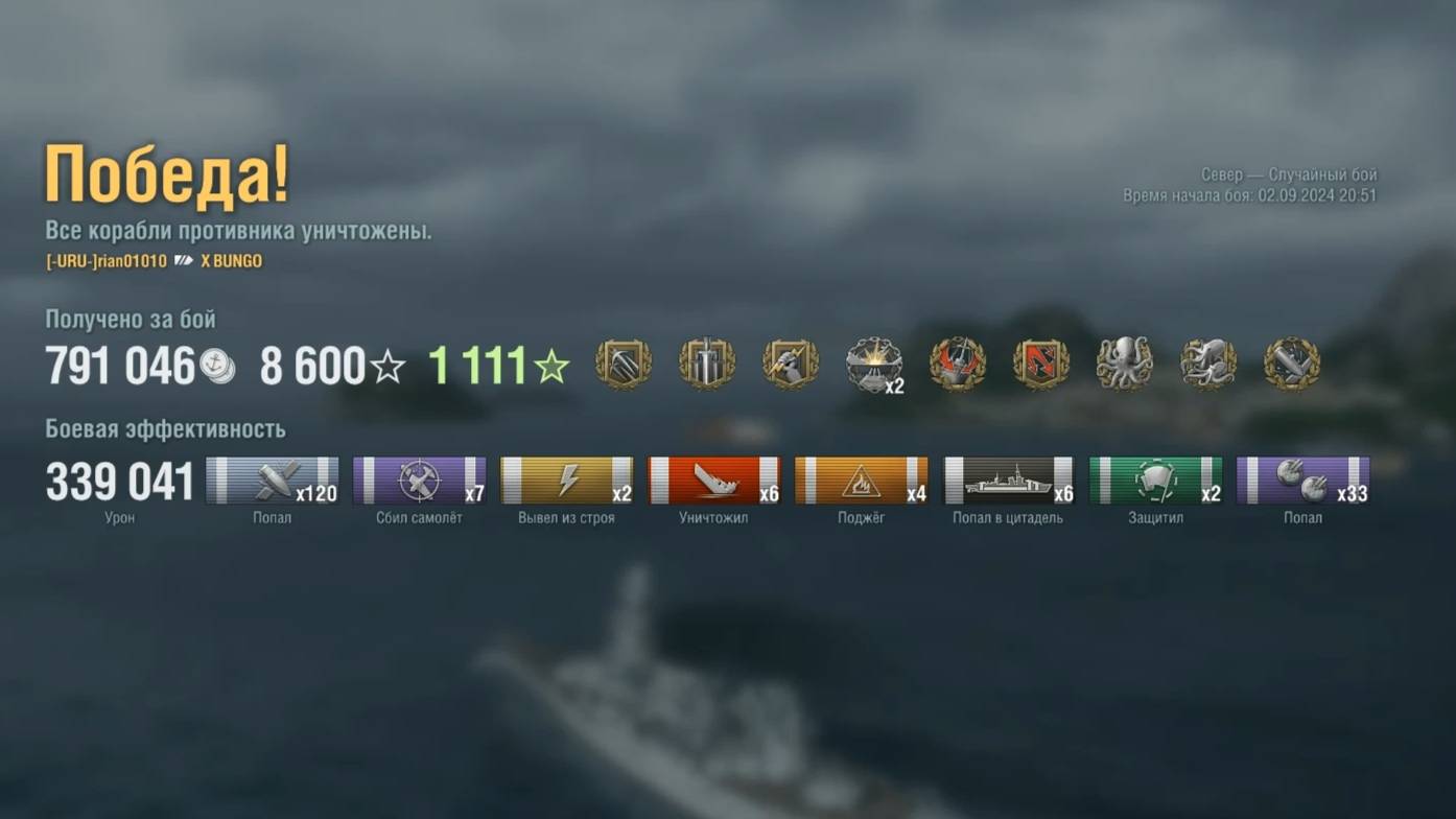Линкор X Bungo : +339к урона 6 фрагов на карте Север - World of Warships