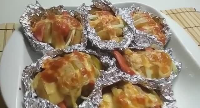 Картошка в фольге с сыром и овощами запеченная в духовке получается просто вкусняшка,сыр и сосиска придает нежный,пикантный привкус! Это не только Просто и Вкусно но еще и Быстро! ***************** ?Маленькая просьба? Напишите в комментариях что то доброе или оставьте любой смайлик Для меня это ОЧЕНЬ важно! Я хочу видеть людей которым нравится то что я готовлю? ******************* 6 картофелин 1 луковица 2 сосиски Сыр Соль Сначала картошку хорошо промысла и высушила,сделала надрезы в виде гармошки и Запекала в духовке при 220 градусов до готовности. Готовность определила зубочисткой. Затем посолила и в картошку положила сосиски,лук,сыр. На видео очень хорошо видно как я добавляла начинку в картофель. Сверху положила еще по кусочку сыра и поставила в духовку до того момента как сыр расплавится. Приятного аппетита!! #картошка #блюдаизкартошки #картошкагармошка #картошкавфольге #филоненкооксана #картошкавдуховке #вдуховке #идеикартофеля #красивоподатькартофель