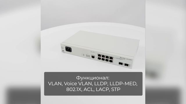 Подробнее о модели MES2408PL: https://eltexcm.ru/catalog/ethernet-kommutatory/kommutatory-dostupa-poe/mes2408pl.html 8 x 1G PoE/PoE+ 2 x 1G (SFP) RS-232 (RJ-45) Пропускная способность - 20 Гбит/с Настройка: • CLI через Telnet, SSH (Cisco-like) • Веб-интерфейс • SNMP Комплектация: • Паспорт устройства • Кабель питания • Комплект крепежа в 19"стойку