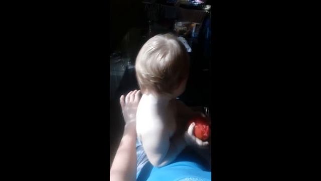 Наташе 11 месяцев. кушаем свежий помидор)