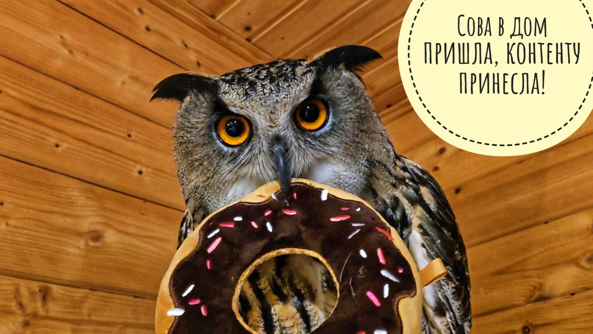 Сова Ёль в доме отдыхает, пока кошка Морошка все дела по хозяйству делает
