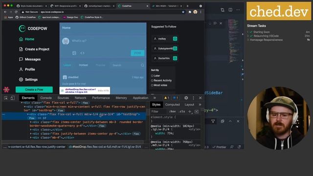 Ep 7: Responsive CSS in CodePow.io Dev Twitter Clone [React] [TypeScript] [Tailwind CSS]