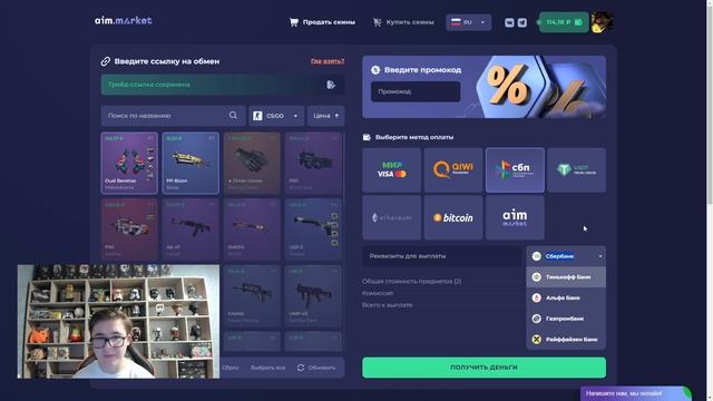 ПРОВЕРКА AIM.MARKET | КАК ПРОДАТЬ СКИНЫ CSGO И CS 2 С ВЫВОДОМ ПО СБП