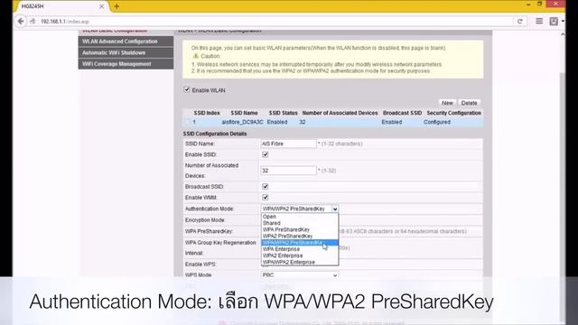 วิธีตั้งค่าใช้งานสัญญาณ Wi-Fi ของ Huawei HG8245H