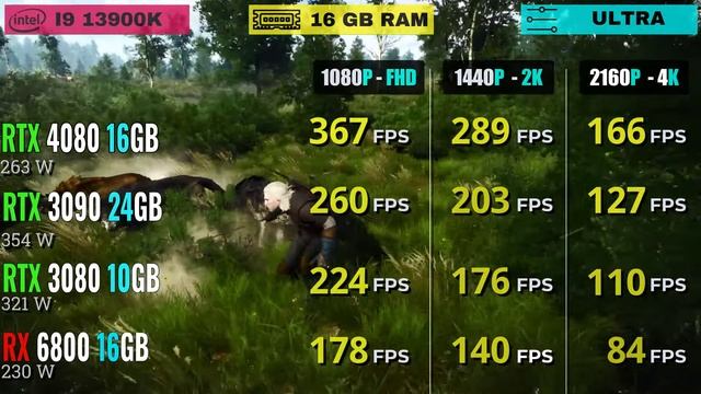 Rx 6800 Vs RTX 3080 Vs RTX 3090 Vs RTX 4080 : Comparing average fps In 16 Popular Games