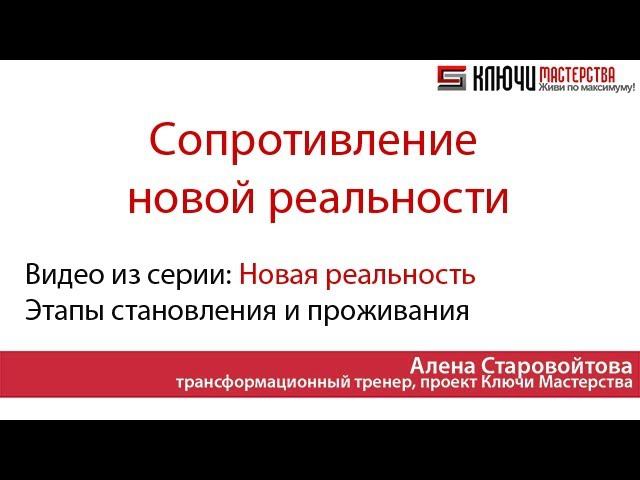 Новая реальность. Май 2014 Перестаньте сопротивляться новой реальности Основные симптомы: понимание, что вы больше не готовитесь к новой реальности, а уже в ней живете. Но возможно обострение сопротивления, отрицание этого. Задачи этого периода: Жить и действовать, исходя из того, что желаемая реальность уже наступила для вас. Увидеть в себе и убрать все очаги сопротивления новому. Внедрять новое в жизнь и отслеживать результаты. ================== Подпишитесь на канал, чтобы не пропустить новое видео: http://bit.ly/19z4QFj Ключи Мастерства в Facebook: https://www.facebook.com/KluchiMasterstva Ключи Мастерства ВКонтакте: http://vk.com/kluchimasterstva