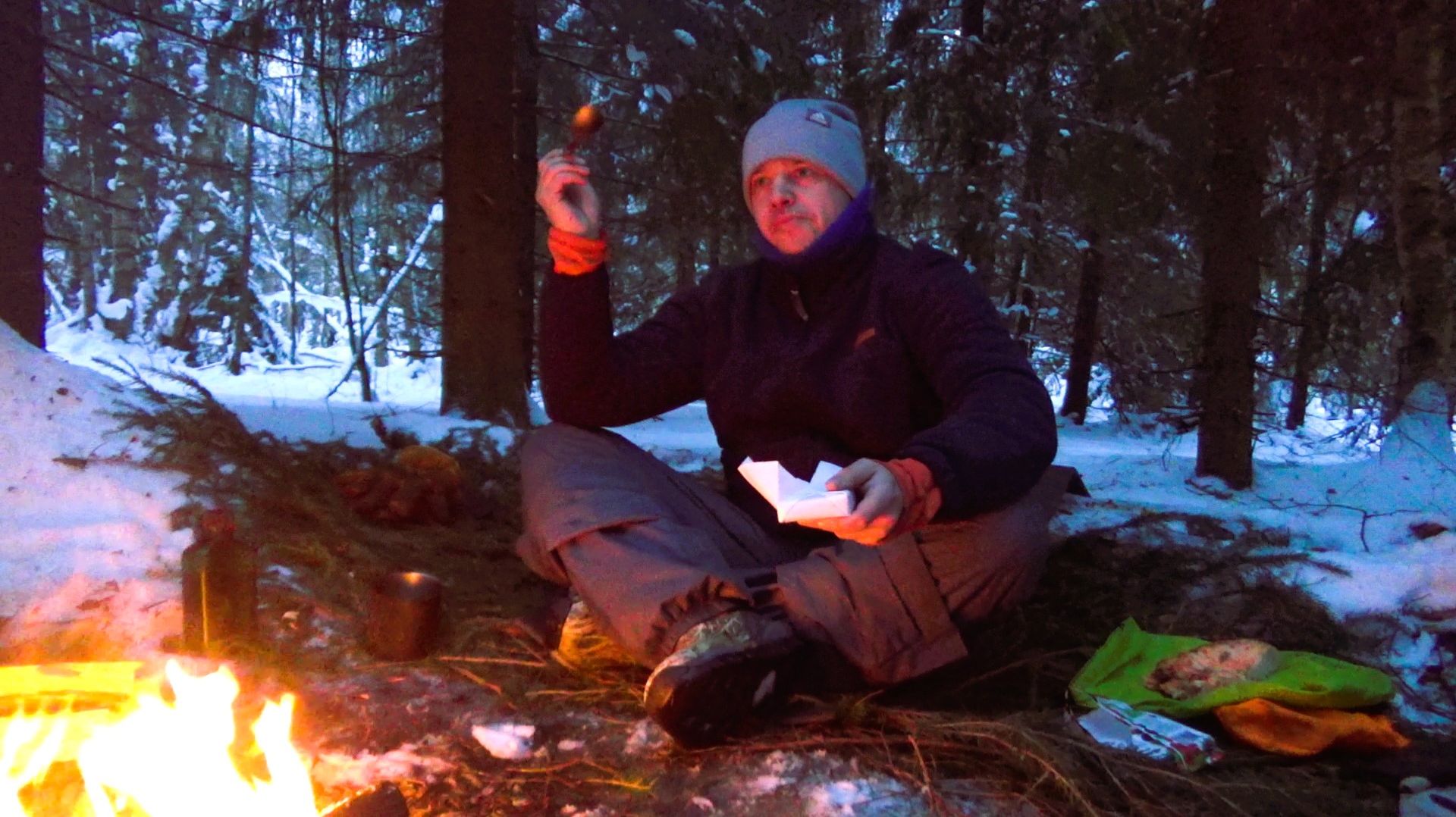 Telegram - https://t.me/+eMyrzyUboTg0OGMy 00:00:08 - иду к месту ночёвки 00:18:34 - подготовка лагеря 00:39:17 - байки у костра: 00:39:39 - про освещение для съёмки 00:42:28 - про романтику ночёвки под открытым небом и её концепцию 00:47:49 - про спальники 00:48:10 - технология сохранения тепла у костра 00:53:47 - концепция поясная сумка+рюкзак 00:58:12 - ужин 00:59:45 - про боязнь выйти на лёд 01:07:42 - про официальный статус канала и качество картинки 01:15:40 - спать 01:17:05 - утро 01:21:38 - опасность готовки на открытом огне, смолы и канцерогены 01:22:46 - завтрак 01:26:06 - идём домой
