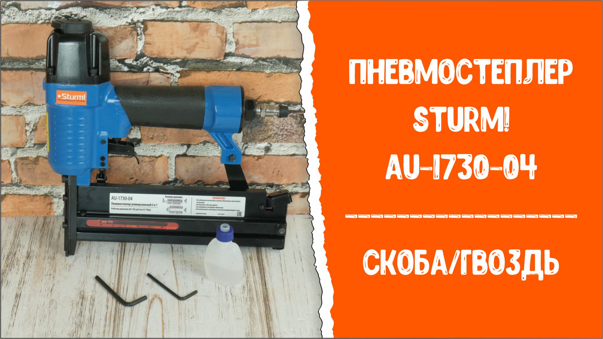 Пневмостеплер универсальный 2в1 Sturm! AU-1730-04 2в1. Скоба/гвоздь