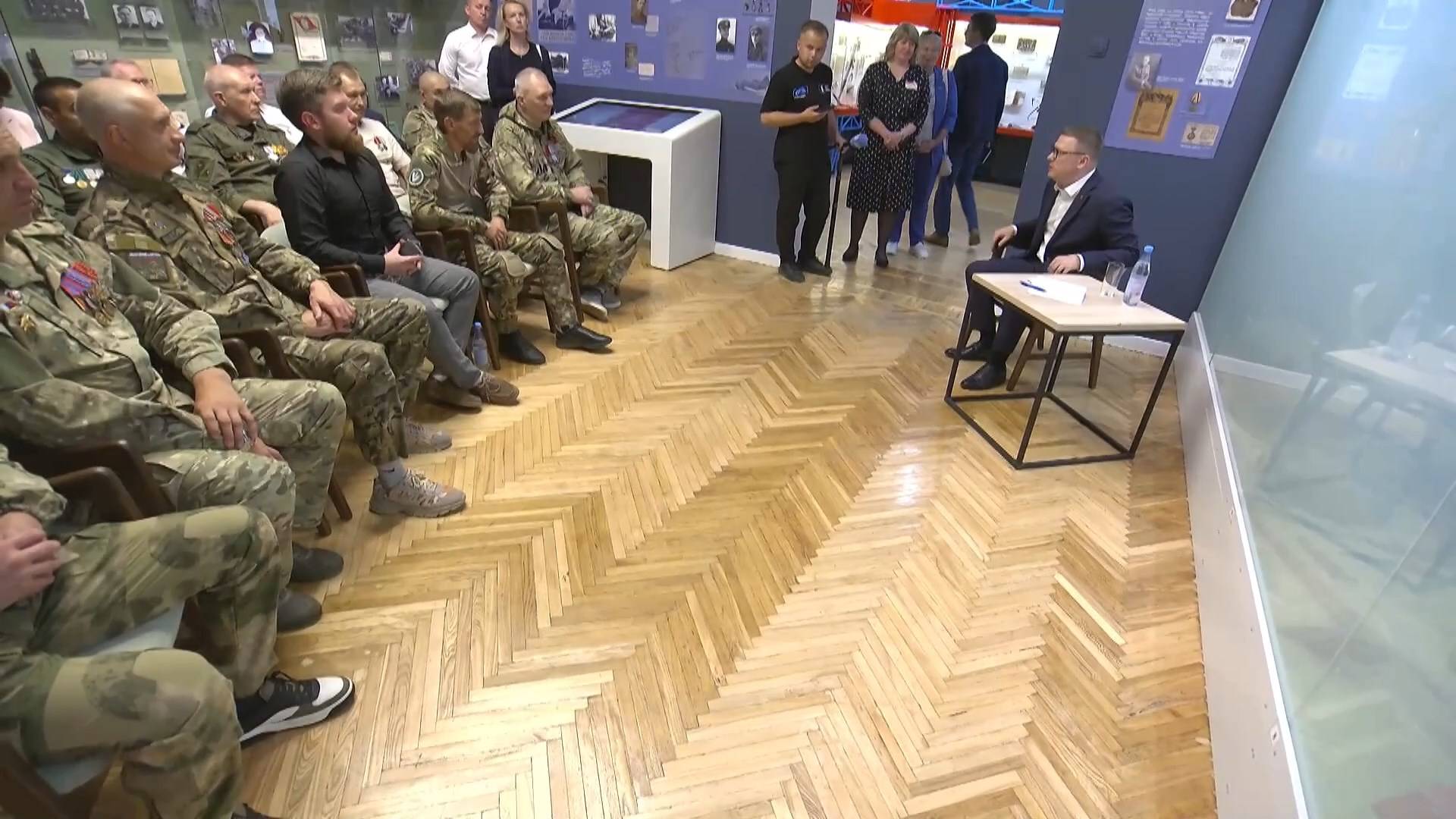 А вот глава региона после областного совещания отправился в городской музей, но не на экскурсию, а для встречи с ветеранами Специальной военной операции. Алексей Текслер поговорил с бойцами о поддержке наших воинов, их семей, а также о патриотическом воспитании подрастающего поколения.